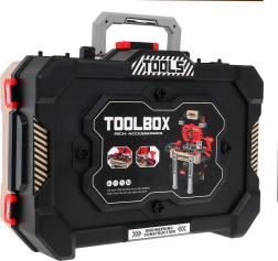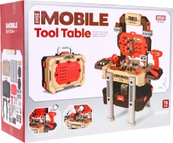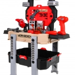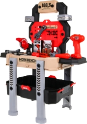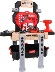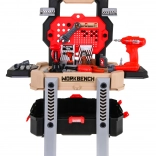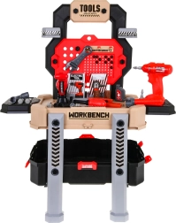 Ta realistična otroška delovna klop združuje pregleden stojalni sistem s prostornim kovčkom, da je orodje vedno pri roki in hkrati preprosto pospravljeno. Zahvaljujoč 78 elementom in delujočemu vrtalniku/vijačniku se bodo otroci preizkusili v vijačenju, žaganju in sestavljanju ter spoznali osnovna načela delavniškega dela.