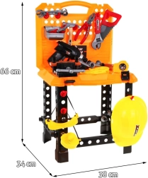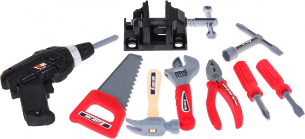 Vsebuje širok izbor orodij kot so vrtalnik, kladivo, žaga in drugo, kar omogoča otrokom simulacijo pravih obrtniških del.