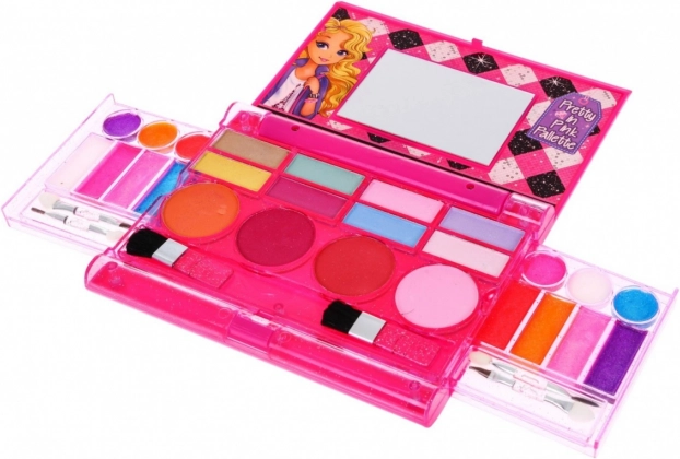 Ta igriva set paleta ličil je izpolnjena želja vsake male damice. Otroci v njej najdejo vse potrebno za varno preizkušanje prvega make-upa – od pisano barvitih senčil prek šmink do čopičev in zrcalca. Kompaktno in zložljivo ohišje se zlahka prenaša in ohranja red, zato je idealno doma in na izletih.