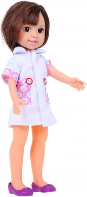 Ta skrbno izdelana punčka v vlogi medicinske sestre spodbuja otroke k posnemovalni igri ter jih uči empatije in skrbi za druge. Z realistnimi pripomočki, kot so stetoskop, termometer in injekcija, lahko mali zdravniki preizkušajo osnovne preglede in ustvarjajo lastne zdravstvene zgodbe.