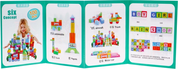- 100 lesenih kock v različnih barvah in oblikah