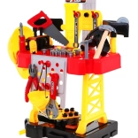 Ta univerzalna otroška delavnica 3v1 spremeni vsako sobo v majhno gradbišče. Otroci lahko delajo pri stabilni mizici, opremo shranjujejo v prenosni kovček in se z zaščitno čelado ter dodatki vživijo v vlogo malega vodje gradbišča. Realistični dodatki spodbujajo domišljijo in na zabaven ter varen način učijo osnovnih delovnih postopkov.