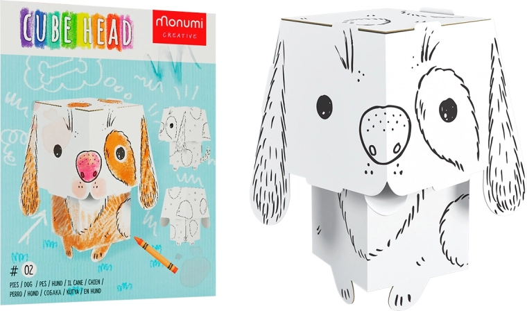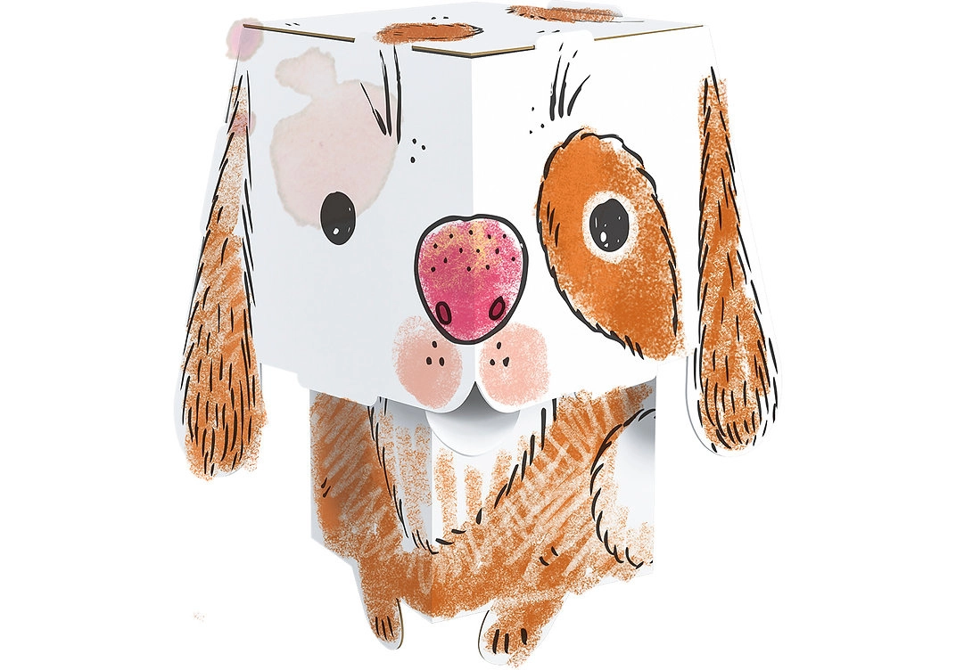 Ta prostorska 3D sestavljanka psa je odlična aktivnost za razvoj ustvarjalnosti in fine motorike. Otroci najprej pobarvajo posamezne dele, nato pa jih preprosto spojijo v trden model z veliko, prisrčno glavo.