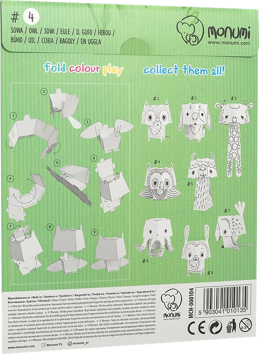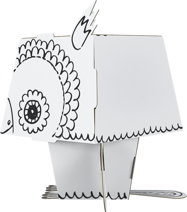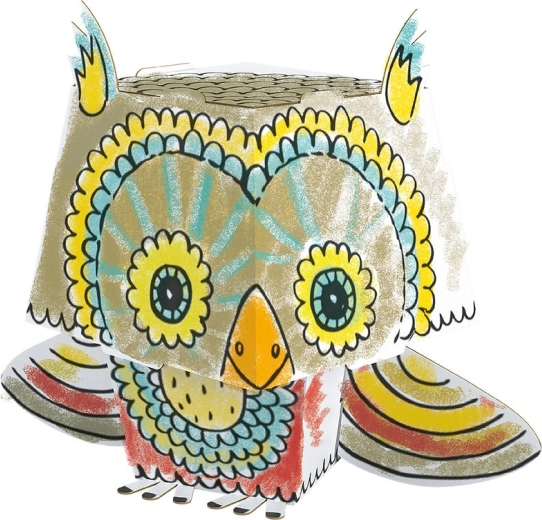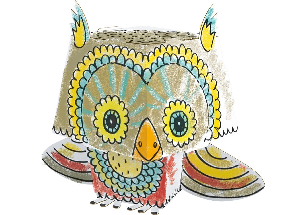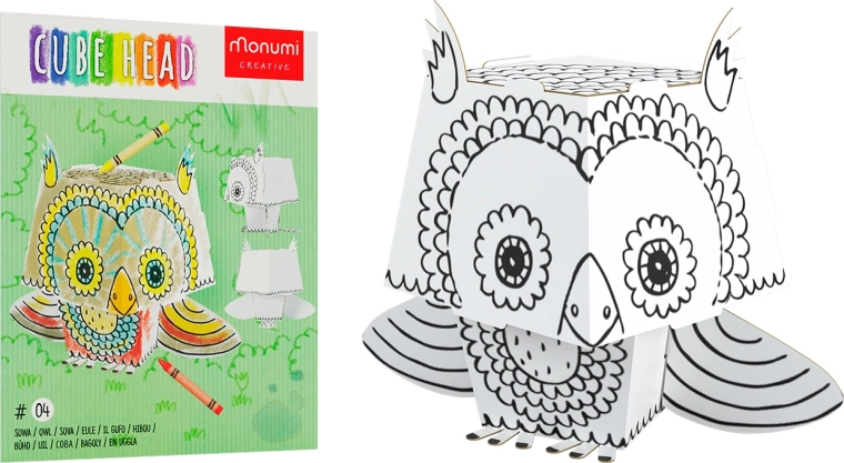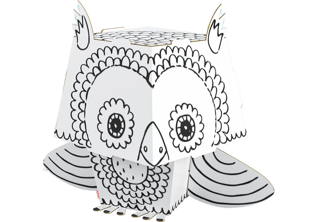 Ta prostorska sestavljanka sove prinaša otrokom ure ustvarjalne zabave. Profesionalen črn tisk z jasnimi obrisi vabi k barvanju ter razvija fino motoriko in domišljijo. Karton dobro vpija vlago, se ne mečka in ne prepušča, zato je primeren za različne likovne tehnike.