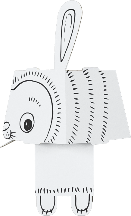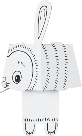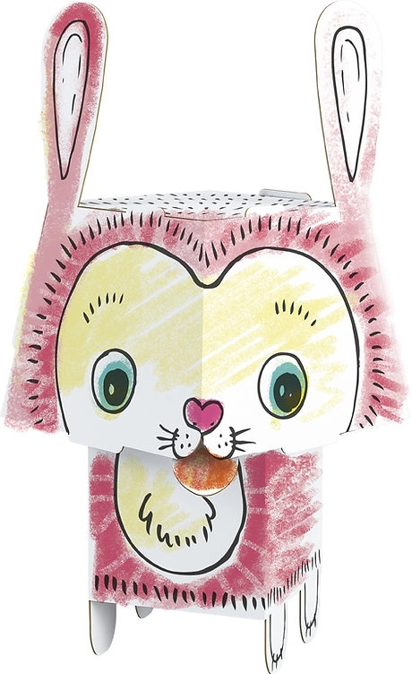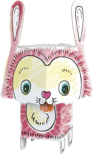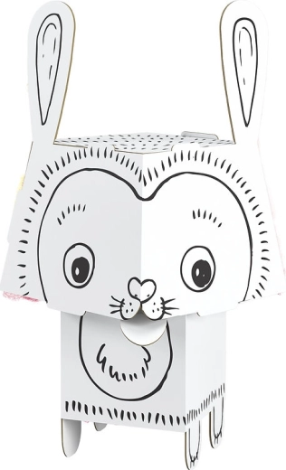 Zabavna papirnata 3D sestavljanka v obliki zajčka otrokom prinaša ustvarjalno veselje pri barvanju in sestavljanju. Model iz trdnega belega kartona ima natančno izrezane dele, ki se preprosto sestavijo brez lepila in škarij. Lahek, stabilen in trpežen po sestavljanju, primeren za barvice, flomastre, markerje in barve.