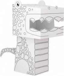 Sestavljanka in pobarvanka v enem prinaša dvojno veselje: najprej otroci pobarvajo posamezne dele, nato iz njih sestavijo impresiven 3D model Tiranosavra. Preprosti koščki se zlahka povezujejo, rezultat pa lepo zažari na polici ali v otroški sobi.