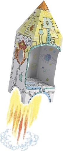 Raketa ima čiste površine, pripravljene za barvice, flomastre in barve. Otroci ustvarijo svoj edinstven dizajn in se takoj zatem lahko odpravijo na vesoljsko pustolovščino.