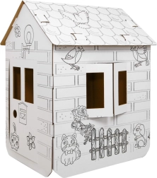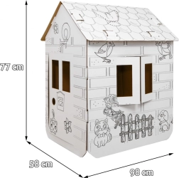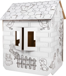Velika kartonasta hišica za barvanje ponuja otrokom od 3 let ure ustvarjalne zabave. Ima odpirajoča se okna in vrata, motive živali za barvanje in se enostavno sestavi brez orodja. Podpira ustvarjalnost, fino motoriko in domišljijo pri igri v notranjih prostorih.