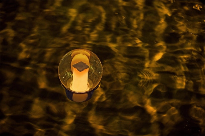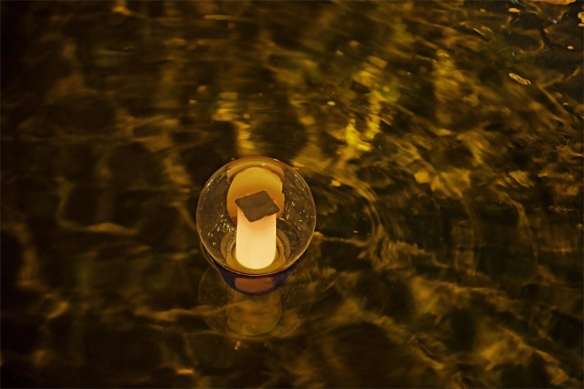 Plavajoči dozirnik bazenske kemije s solarno LED osvetlitvijo