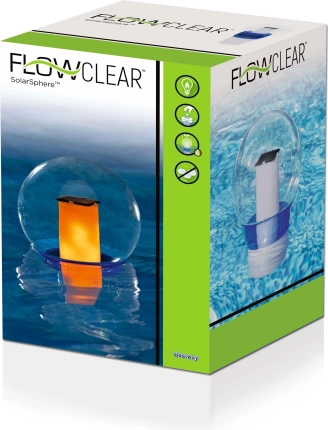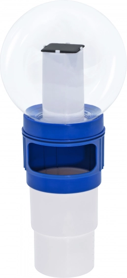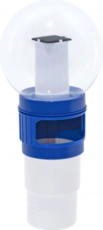 Pametna rešitev 2v1 za vsak vrtni bazen: plavajoči dozirnik bazenske kemije Bestway zagotavlja enakomerno sproščanje klorovih ali bromovih tablet in hkrati zvečer prijetno osvetli vodno gladino z LED svetlobo. Sončna celica se čez dan polni s svetlobo, zato ne potrebujete kablov ali zamenljivih baterij.