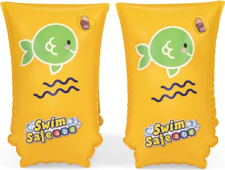 Otroški napihljivi rokavčki Bestway pomagajo malim plavalcem pri prvih korakih v vodi. Zahvaljujoč dvokomorni zasnovi zagotavljajo zanesljiv vzgon, ne omejujejo gibanja in njihova intenzivno rumena barva z zeleno ribico povečuje vidnost ter privlačnost za otroke. Preprosto se napihnejo in izpihnejo, imajo varnostni ventil in so idealni za bazen, plažo in počitnice.