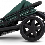 Velika EVA kolesa ne zahtevajo napihovanja, odlično blažijo neravnine, sprednja vrtljiva kolesa z možnostjo blokade pa zagotavljajo zanesljivo smer tudi na slabši podlagi. Ergonomski ročaj z površino iz eko usnja se udobno drži in olajša vsakodnevno upravljanje. Samoumevna sta centralna zavora in odsevni elementi za boljšo vidljivost ob mraku.