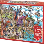 Vstopite v svet DOODLETOWN z motivom vikinške vasi in uživajte v sestavljanju iz 1000 koščkov znamke COBBLE HILL. Neregularen izrez (random cut) z nenavadnimi oblikami prinaša višjo zahtevnost in zabaven izziv za strastne ljubitelje sestavljank. Po sestavi ima slika dimenzije pribl. 67,6 × 48,9 cm.