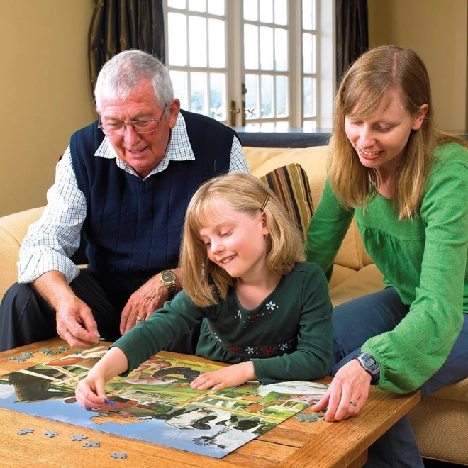 Predstavljamo edinstvene družinske sestavljanke Cobble Hill. Ta sestavljanka vsebuje tri različne velikosti kosov - majhni, srednji in veliki, kar omogoča udobno sestavljanje za vse člane družine.