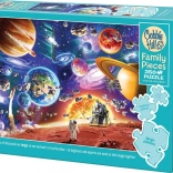 Družinska sestavljanka »Vesoljska popotovanja« znamke COBBLE HILL je zasnovana tako, da lahko pri sestavljanju sodelujejo vsi – od najmlajših do starih staršev. V posameznih delih slike boste našli velike, srednje in majhne kose, zato si lahko vsak izbere stopnjo zahtevnosti, ki mu ustreza.