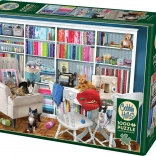 Uživajte v vrhunskem doživetju sestavljanja s puzzle COBBLE HILL – Šivalnica. Zaradi posebne izsekanke, ki ne sledi klasični mreži, imajo koščki edinstvene oblike, zato je sestavljanje še bolj privlačno in intenzivno. Motiv prijetnega šivalnega kotička bo navdušil ljubitelje ročnih del in zbiratelje kakovostnih sestavljank.