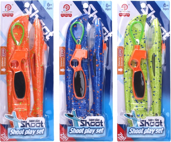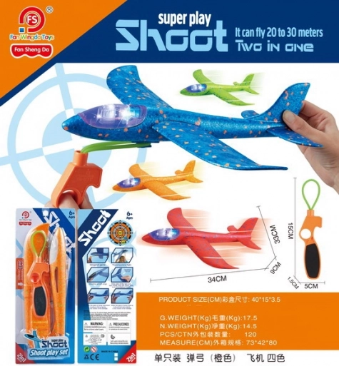 Zabavno izstreljevalno letalo s svetlobnimi učinki bo razveselilo male in velike pilote. Dolžina 34 cm, 3× baterije AG3 v paketu in 4 barvne različice (modra, zelena, oranžna, rdeča) za še več zabave.