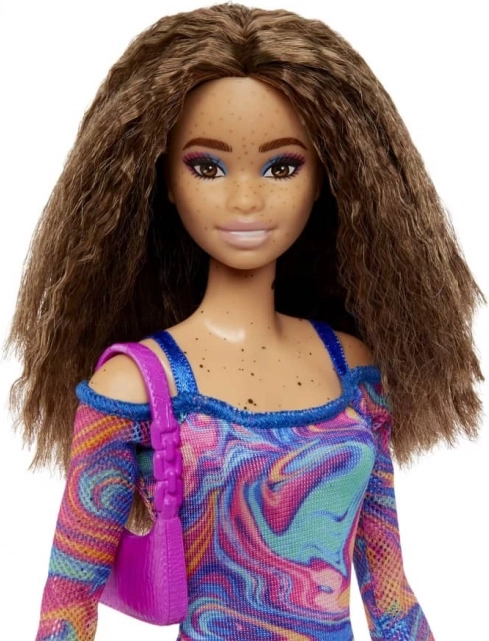 Odkrijte svet sloga s punčko Barbie Fashionistas, ki slavi raznolikost in spodbuja kreativno igro. Ta modna punčka navduši z valovitimi rjavimi lasmi, prikupnimi pegicami in barvitim psihedeličnim outfitom z dodatki, ki poudarijo njeno osebnost. Odlična darila za otroke od 3 let, ki obožujejo modo in pripovedovanje zgodb.