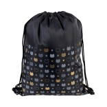 Stilska in praktična vreča za obutev znamke BAMBINO v elegantni črni barvi z zlatimi mačkami. Zahvaljujoč dvojnim stranskim vrvicam jo lahko nosite v roki, na rami ali na hrbtu. Vzdržljiv material ščiti vsebino pred umazanijo in vlago, mere 34 × 43 cm pa ponujajo dovolj prostora za obutev in športno opremo.