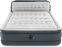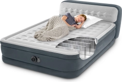 Dvoslojna napihljiva postelja INTEX s tehnologijo Dura-Beam Fiber-Tech ponuja veliko ležalno površino, integrirano vzglavje in vgrajeno električno črpalko za hitro napihovanje in izpihovanje. Višina od tal 46 cm ter površina iz mehkega velurja zagotavljata udobje, stabilnost in čist videz. Največja nosilnost 272 kg omogoča zanesljivo spanje za dva.