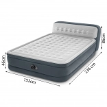 Vgrajena električna črpalka omogoča hitro in breznaporno napihovanje ter izpihovanje. Prijetna velurjeva površina je nežna do kože in izboljša oprijem rjuhe. Integrirano napihljivo vzglavje nudi oporo pri branju in počitku. Postelja je priložena z transportno torbo in popravilnim obližem.