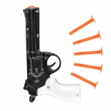 Zabaven in varen pištolski komplet za male strelce. Zahvaljujoč mehkim puščicam s priseski lahko otroci vadijo natančnost na tarči ali na gladkih površinah brez tveganja za poškodbe. Pištola je izdelana iz kakovostne, za zdravje neškodljive plastike, odporne na poškodbe, in odlično leži v otroški roki. Idealno darilo za otroke od 6 let.