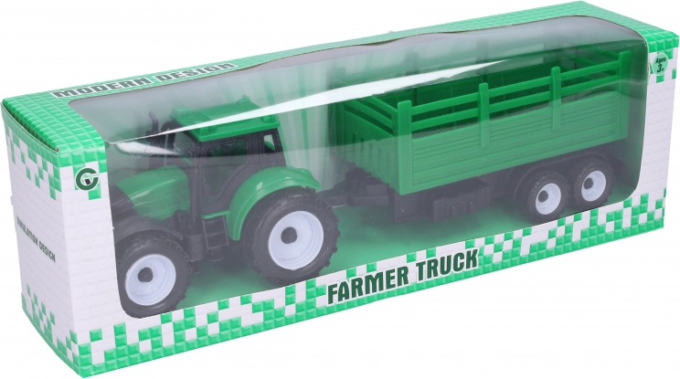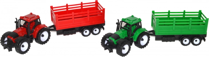 Traktor s prikolico je idealno orodje za male kmete! Pogon na vztrajnik zagotavlja enostavno upravljanje, igrača pa je na voljo v privlačnih barvah zelena in rdeča.