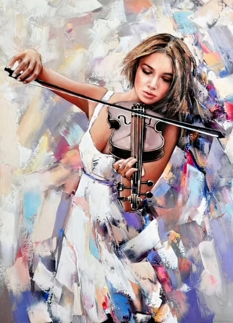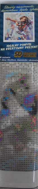 Postopek za diamantno slikanje: Platno je prevlečeno z lepilom in zaščiteno s prozorno folijo. Folijo odstranjujte postopoma po delih, da lepilna plast ostane čista. Kamni ustrezajo znakom na platnu v skladu s priloženo legendo in so razvrščeni po barvah.