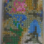 Diamantno slikanje - postopek: Zgornja stran platna je premazana z lepilom in prekrita s prozorno folijo. Folijo odstranjujte postopoma po delih, kot boste nanašali kamenčke. Platno vsebuje znake, ki so navedeni v priloženi legendi in se ujemajo z oštevilčenimi vrečkami s kamenčki. Kamenčke iz izbrane vrečke stresite v posodico, zajemite vosek v konico peresa in začnite ustvarjati sliko s svojimi kamenčki.