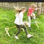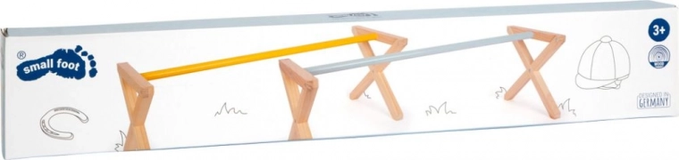 Predstavljamo vam ovirno progo Kavaleta znamke Small Foot, izdelano iz masivnega lesa, ki omogoča ustvarjanje lastne male skakalne proge. Dve oviri, ki spominjata na prave konjeniške kavalete, lahko uporabljate prilagodljivo: s palico v spodnjem položaju za manjše skoke ali pa ju lahko zložite eno na drugo. Igra »konjiček« in skakanje čez ovire s hobi konjičkom je priljubljena zabava med ljubitelji konj vseh starosti.