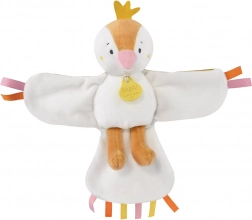 Ta žametno mehak ptiček v odtenkih rumene in oranžne navduši z nežnostjo in pomirjujočo zvočno prisotnostjo. Barviti trakovi na krilih, repu in glavici vabijo k prijemanju, grizljanju in urjenju fine motorike. Stilska škatlica s cvetličnim motivom ga naredi čudovito darilo za novopečene starše.