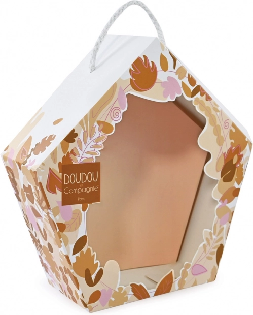 Izvirna embalaža v obliki ptičje hišice s cvetličnim motivom naredi iz igračke idealno darilo ob rojstvu dojenčka.