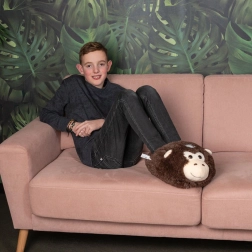 Ta topli copat COZY NOXXIEZ v prikupnem dizajnu gorile je odlična izbira za vse ljubitelje mehkega udobja. Namenjen je notranji uporabi med počitkom – stopala ostanejo topla zaradi prijetnega polnila in mehkega zunanjega materiala. Odlično se poda na kavč ali v posteljo ter navduši tako otroke kot odrasle.
