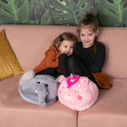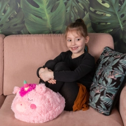 Stilni rožnati samorog z barvnim rogom navduši na prvi pogled in polepša vsak dnevni ali otroški prostor.