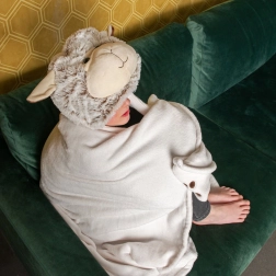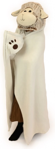 Ta prisrčna topla kapucasta odeja spremeni vsako crkljanje v avanturo. Plišasta kapuca z ušeski in obrazom ovčke ter praktična žepa v obliki tačk spodbujata otroško domišljijo in hkrati lepo grejeta roke. Lahek in zračen flis je prijeten na dotik in odlično greje.