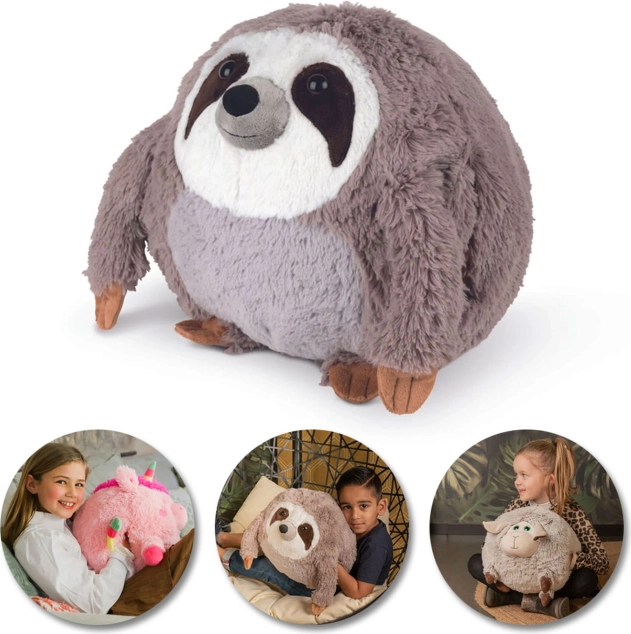 Nazadnje se okleni večfunkcijskega plišastega lenivca, ki služi kot blazina, rokavnik ali zvest plišasta igrača. Idealen za potovanja z avtom ali letalom, ta lenivec nudi udobje in toploto s pomočjo dveh stranskih odprtin za roke. Te odprtine lahko služijo tudi kot skrivališče - popoln prostor za skrivanje majhnih zakladov.