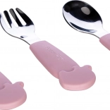 Set pribora FreeON iz nerjavečega jekla pomaga otrokom učiti se samostojnega prehranjevanja. Zasnovan je tako, da je hranjenje bolj zanimivo za otroka, pa tudi za mamico in očka.