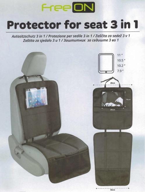 Avtosedež s ščitnikom in organizatorjem 3v1 je zasnovan tako, da nudi celovito zaščito in praktičnost. Ščiti sedež avtomobila pred odtisi in umazanijo zahvaljujoč odpornemu materialu, ki se ga enostavno čisti.