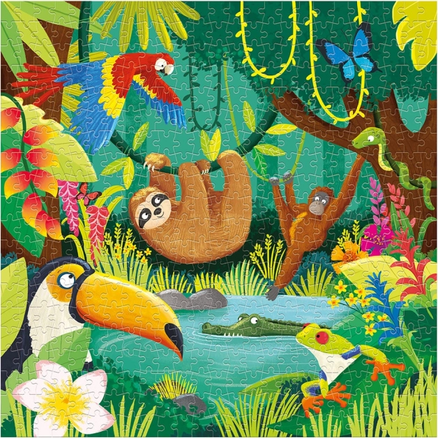 Pod krošnjami deževnega pragozda se skriva svet poln skrivnosti – in vi ga lahko odkrijete košček za koščkom. Ta kakovostna družinska sestavljanka prinaša čarobno ilustrirano džunglo z lenivcem, orangutanom, tukanom in krokodilom. Zaradi uravnotežene zahtevnosti je odlična za skupno sestavljanje otrok in odraslih.