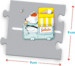 Sestavite križišča, krožišča, ovinke in dolge ravnine ter pripravite napete dirke kar v otroški sobi. Cestna sestavljanka MAGELLAN s poetičnimi ilustracijami (avtorica Ina Hattenhauer) otroke pritegne v igro in jih hkrati nehote uči prometnih pravil ter obzirnosti na cesti.