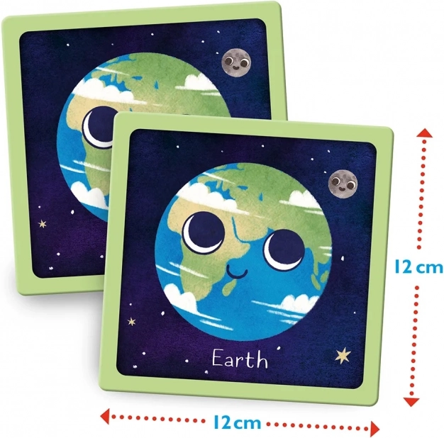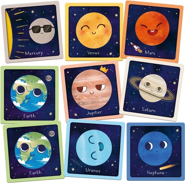 Velike spominske kartice Planeti znamke Magellan so lepo ilustrirana miselna igra, pri kateri si otroci na zabaven način utrdijo znanje o planetih našega Osončja. Zaradi velikih in preglednih kart je rokovanje preprosto tudi za mlajše otroke, igra pa zabava vso družino.