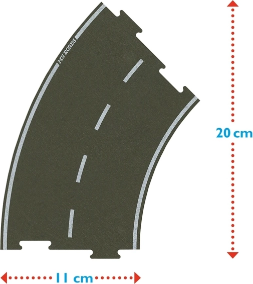 Z dodatnim kompletom velikih ovinkov za sistem MyRoads zgradite še bolj zabavne in raznolike proge. Deli iz naravnega lesa in kartona se natančno in trdno povežejo, zato lahko otroci brez omejitev eksperimentirajo z oblikami in dolžino svojih cest.