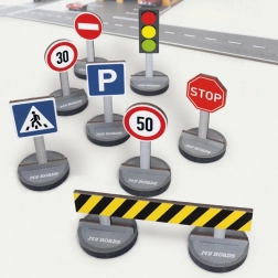 Set prometnih znakov MAGELLAN MyRoads je idealen dodatek k vašim lesenim cestam in mestom. Izdelki so narejeni v Nemčiji iz trajnostnih in odgovorno pridobljenih naravnih materialov, ki so prijazni do okolja. Zaradi trdnih podstavkov znaki stabilno stojijo in se zlahka kombinirajo z ostalimi elementi linije.