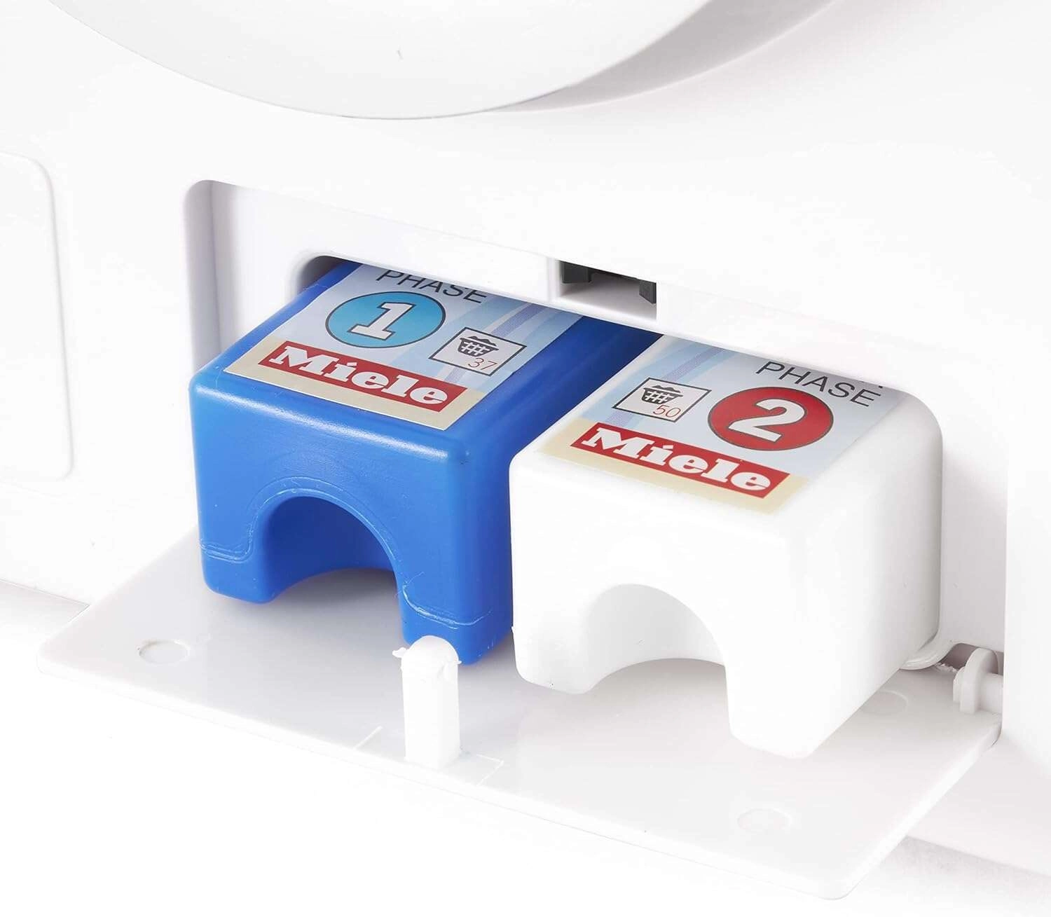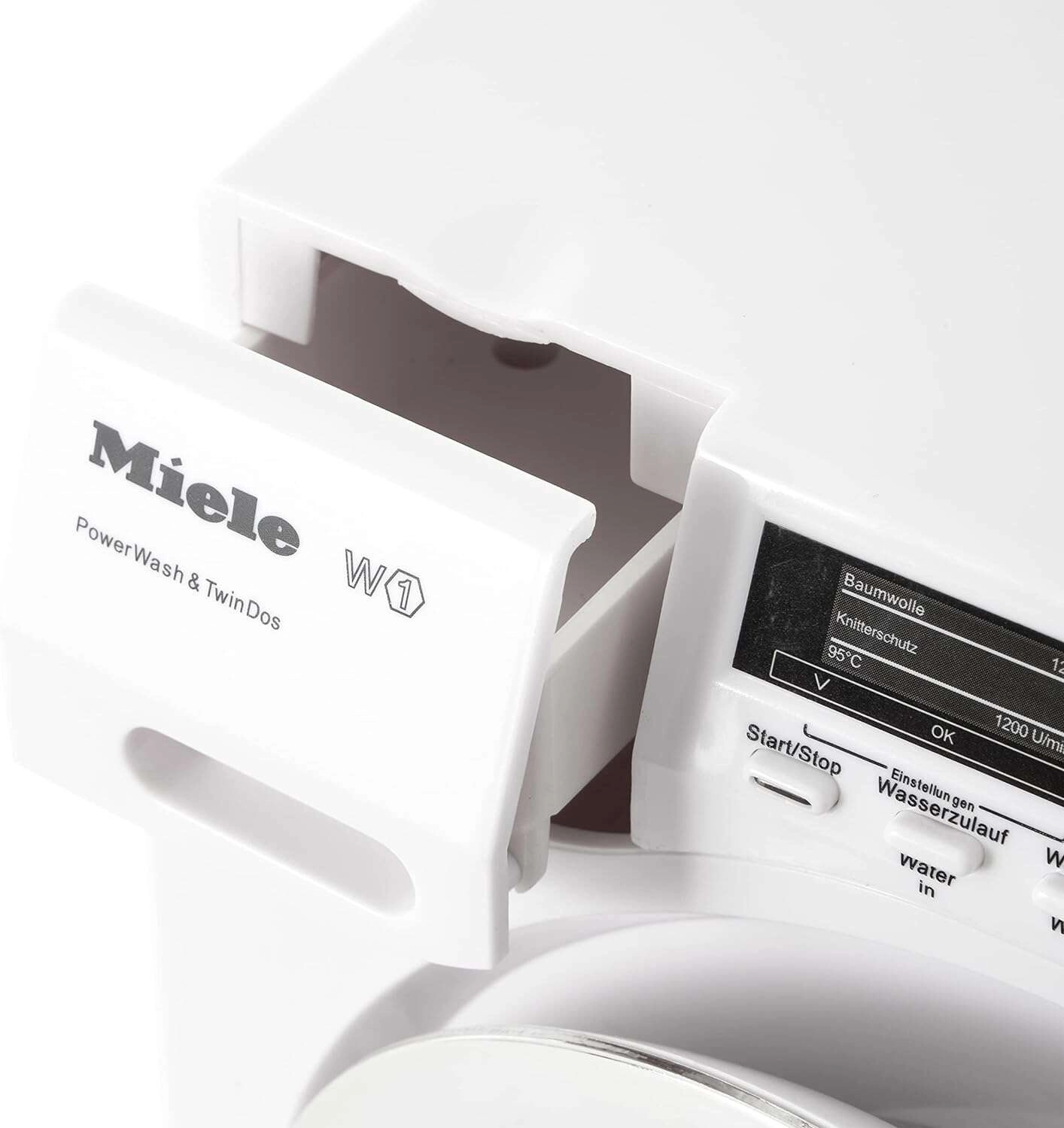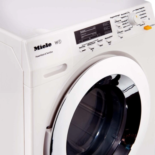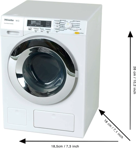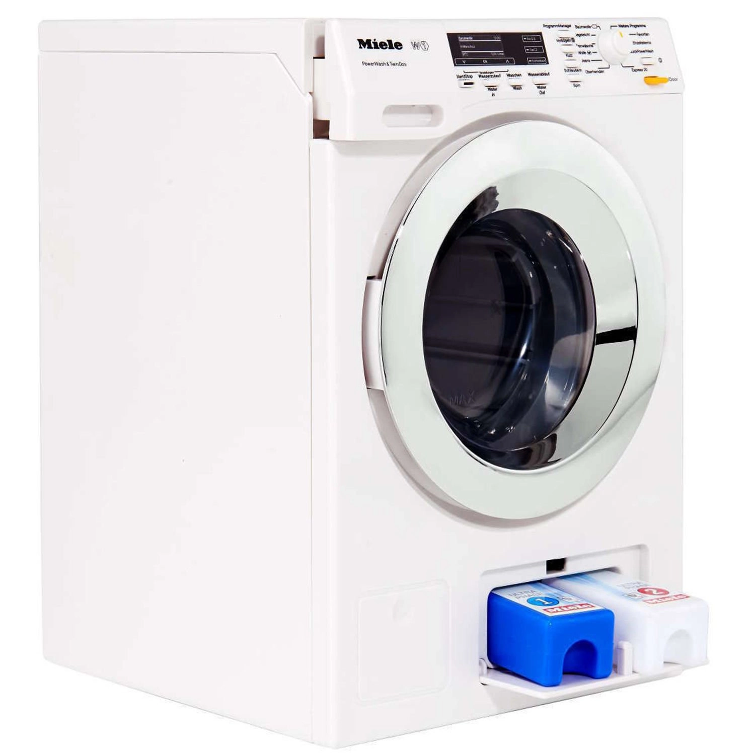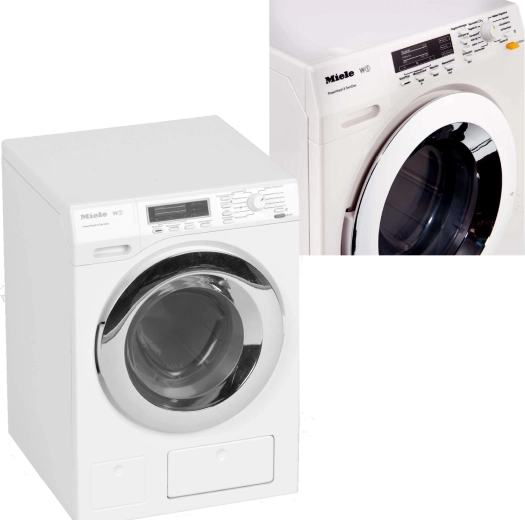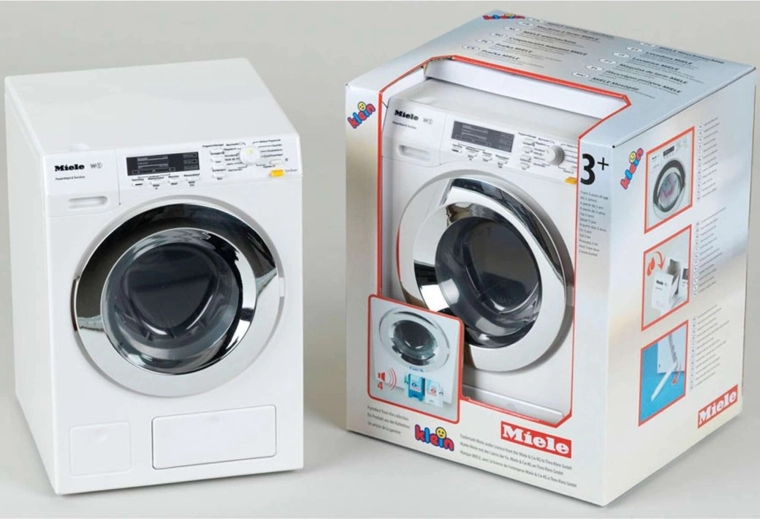 Realistični otroški pralni stroj MIELE znamke KLEIN otrokom prinaša pristno zabavo pri posnemanju odraslih. Ponuja vrteči se boben, 4 pralne cikle, LED indikacijo in možnost pranja z vodo ali brez vode. Zahvaljujoč zvočnim učinkom in funkcionalnemu predalu za vodo je igra še bolj prepričljiva in varna za otroke od 3 let naprej.