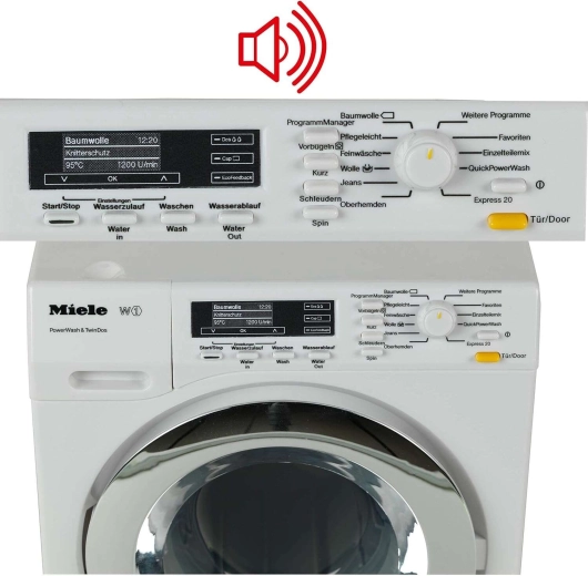 Ta licencirani otroški pralni stroj MIELE zvesto posnema pravi aparat in motivira otroke k razvoju domišljije ter fine motorike. Zahvaljujoč štirim realističnim programom – polnjenje, pranje, izpust vode in ožemanje – bodo mali pomočniki uživali v obilici zabave. LED kontrolka in realistični zvoki posameznih faz poskrbijo za pristno doživetje.