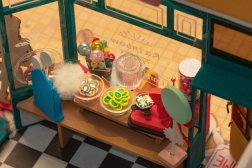 Vgrajena LED luč osvetli izložbo in notranjost slaščičarne ter poudari vse drobne podrobnosti. Idealno kot dekoracija na mizi ali polici.