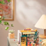 Po vklopu LED luči se miniaturna izložba spremeni v čaroben večerni prizor – popolna dekoracija za polico ali delovno mizo. Model bo razveselil začetnike in izkušene sestavljavce ter ponuja približno 9 ur prijetnega ustvarjanja brez potrebe po barvanju.