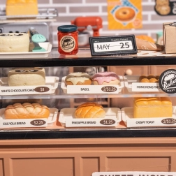 Vgrajena LED osvetlitev poudari vitrino s pecivom in modelu doda realističen, topel utrip. Potrebni sta 2× AAA bateriji.