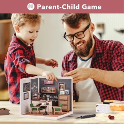 Vstopite v svet miniaturne kavarne, kjer vsak detajl razveseli oko – od stolov in mizice do kavnega aparata in stenskih dekoracij. Komplet je dobavljen v razstavljenem stanju, po sestavi pa ustvari impresiven prizor, ki polepša polico, mizo ali vitrino. LED osvetlitev doda modelu edinstveno atmosfero.