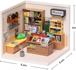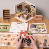 Miniaturna knjigarna Robotime je dovršena sestavljanka, ki vas popelje v svet drobnih detajlov. Po sestavljanju izstopa z realističnimi policami, pultom z blagajno in ljubkimi dodatki. Integrirana LED osvetlitev zvečer ustvari edinstveno vzdušje in model spremeni v privlačno dekoracijo.